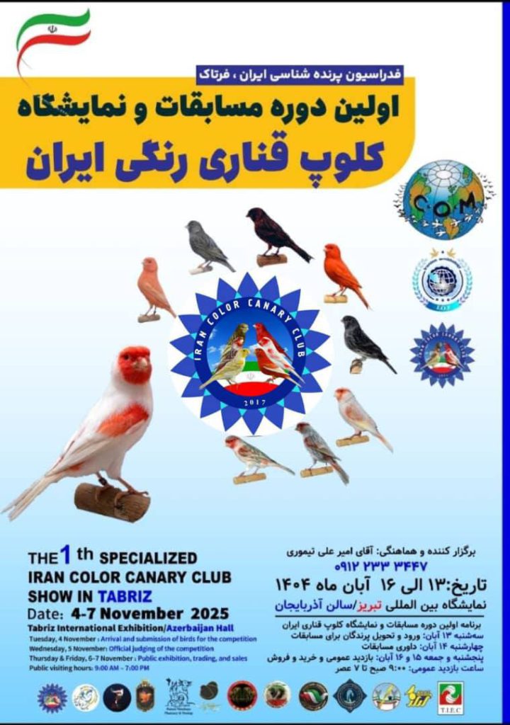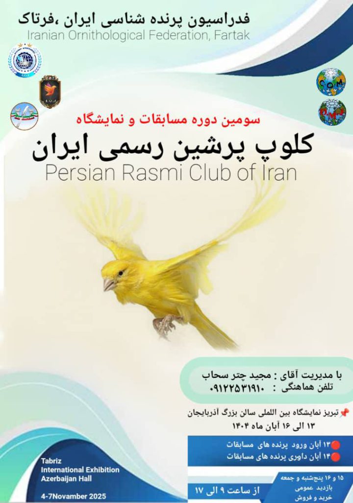 به همراه برگزاری کلاس های آموزشی درزمینه پرندگان زینتی زیر نظر داوران و اساتید بین المللی دارای مدرک O.M.J